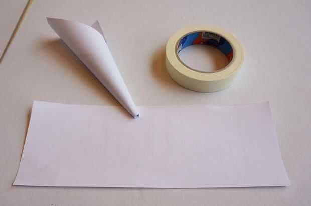 Enrolle el papel y cinta de. Asegúrese de que el agujero es lo suficientemente grande para que deje funcionar el chocolate en el huevo.