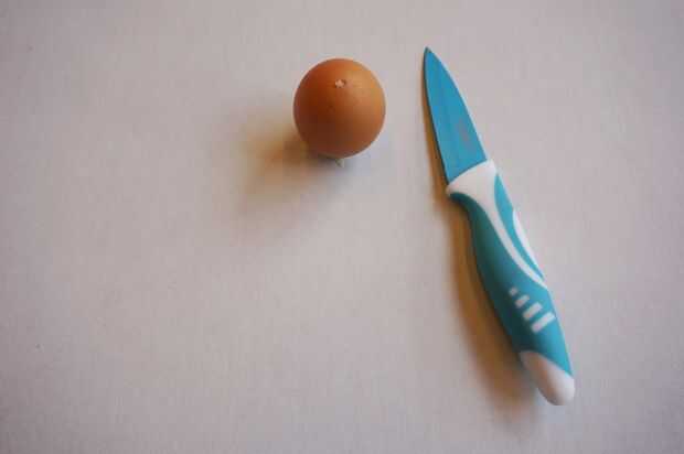Haga dos agujeros en un huevo crudo de tamaño regular.