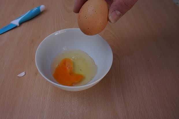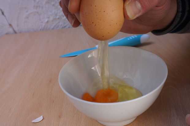 Mantenga el huevo sobre el recipiente antes de soplar.
