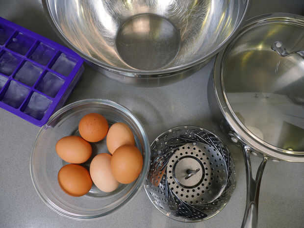 he utilizado esta técnica durante muchos años y siempre mostrando otros... hace uso de huevos duros en recetas mucho más fácil, que el proceso de peeling generalmente de amor. Utilizo esta necesidad había picado huevos duros cocidos, como para ensala