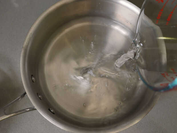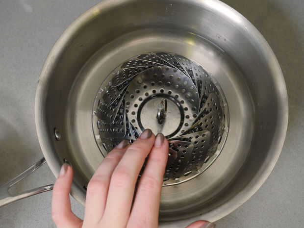Agregue aproximadamente una pulgada de agua en el fondo de su olla, pero no tanto que se levanta al nivel de la cesta de la vaporera, que te pones en la olla a continuación.