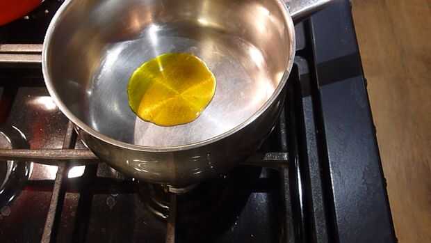 Cuadro 1. Añadir aceite a la sartén caliente (yo usé Chile infundida aceite de oliva)