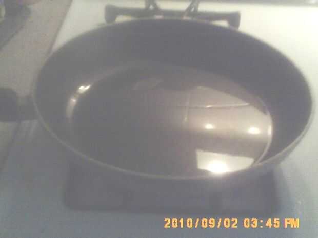 Tomar una sartén y poner un poco de aceite en ella dicen una cucharadita o un poco más.