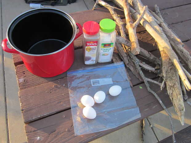 Necesitarás una bolsa de plástico Ziploc, huevos, un pote (1 galón tamaño o mayor debe funcionar bien), agua y una fuente de calor (estufa, fuego o algún otro medio para cocinar los alimentos). Opcional: ingredientes extras para añadir a los huevos (carne, especias, hierbas, etc.).