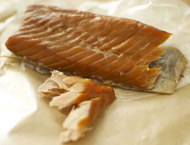 - Servir para arriba con el salmón confitado y algunos verdes.