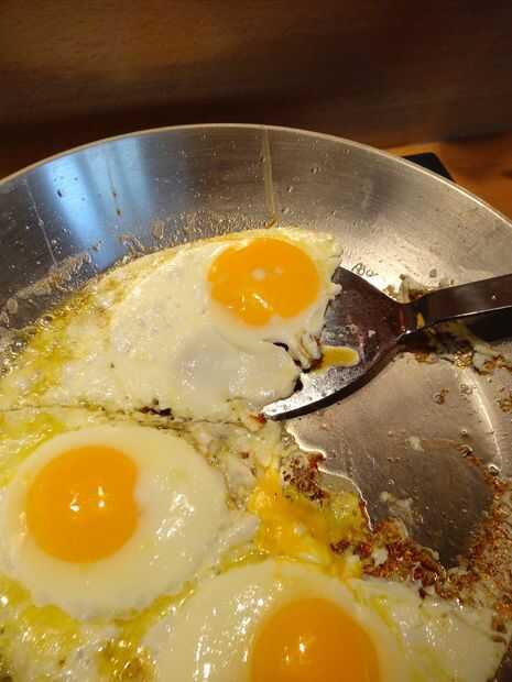 huevos fritos son una mi comida. Me encuentro les freír para arriba en todo momento del día y la noche. Después de una larga noche, conozco a acurrucarse en la cama con un sandwich de huevo frito (en un plato, por supuesto).Me encontré en mi propia e