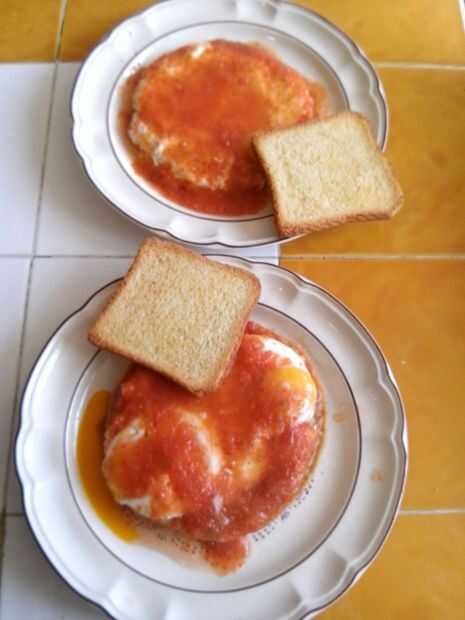 plato esta mexicana Huevos Rancheros es un juego de la Shak-Shuka del Medio Oriente donde los huevos escalfados se cocinan en un guiso de tomate rico. Esta vez, aunque el plato utiliza condimentos mexicanos y se remata con queso cheddar en lugar de q