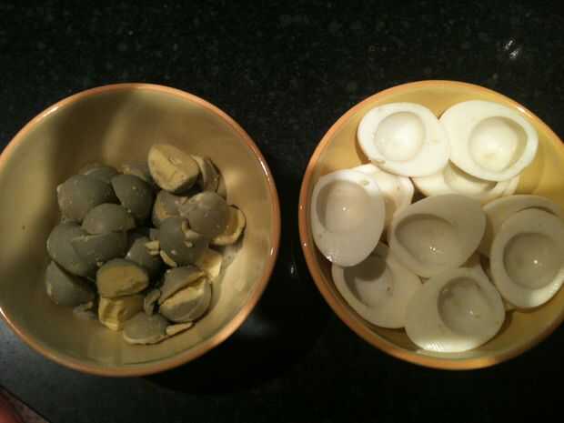 empezar con huevos.  Yo prefiero minas que recién podrá colocarse por mis mascotas pollos.  Por supuesto, puede empezar con los huevos de su tienda de abarrotes o mercado.  Yo generalmente hervir hasta por lo menos 15 huevos al hacer esto, porque alg