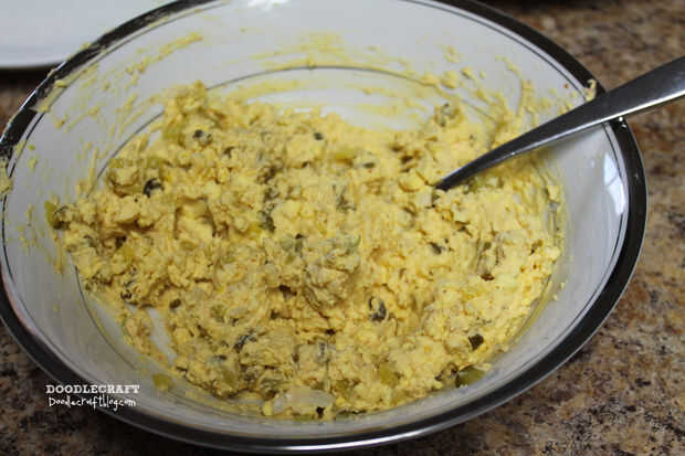Quitar las yemas y ponerlas con el aderezo y el pimentón.