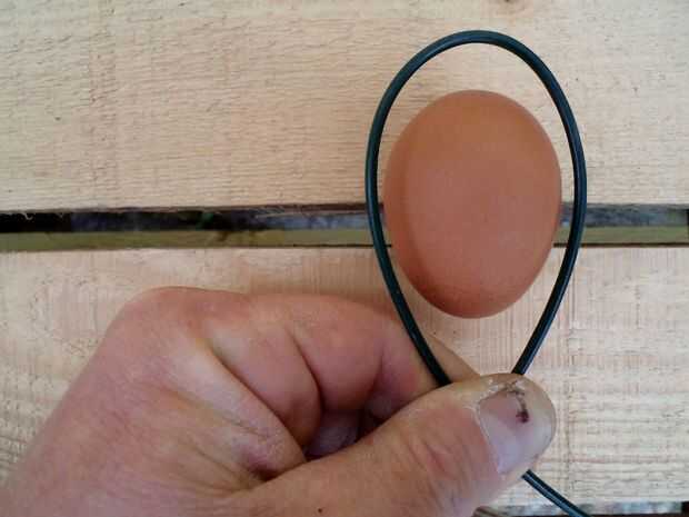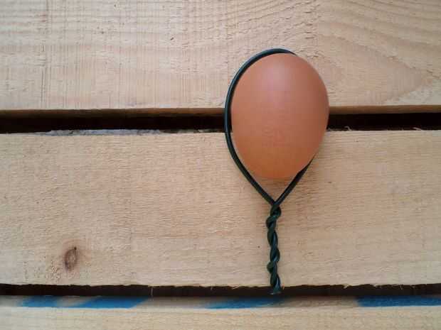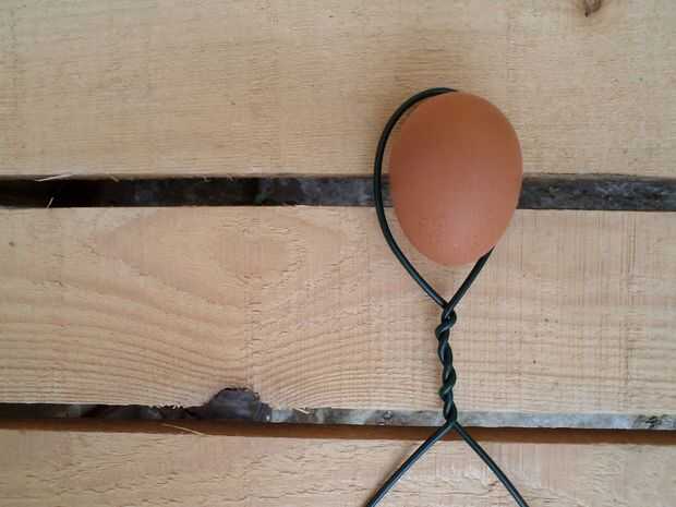 Forma un pedazo de alambre de metal alrededor del huevo y unen los dos extremos.