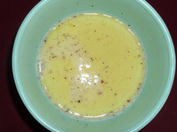 1. crack ambos huevos y ponerlos en un tazón de cereal y batir con un tenedor. (Asegúrese de que estén completamente mezcladas!)