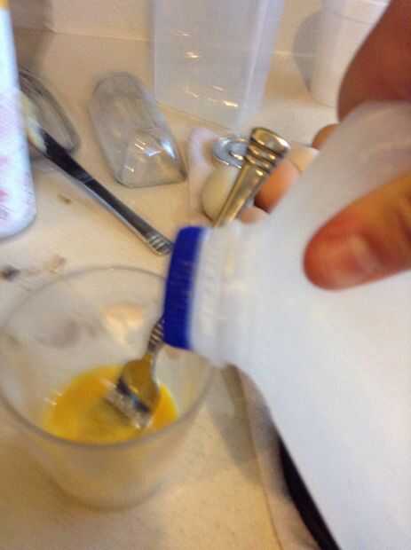 Paso 1: Conseguir una taza y poner 1 huevo y un poco de leche