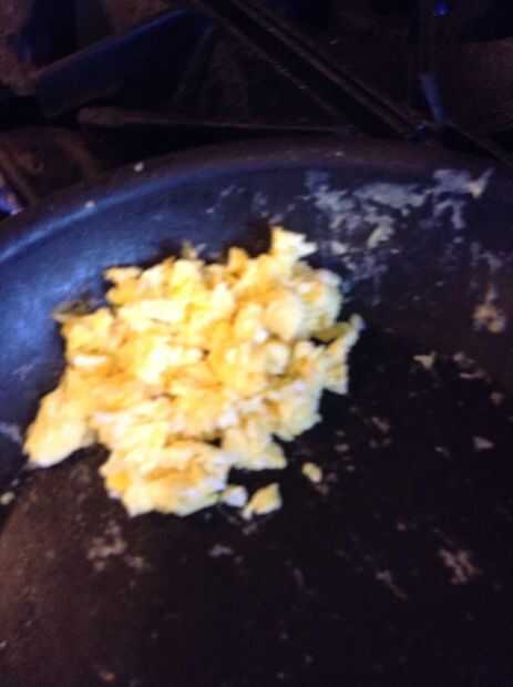 este es un desayuno comer todas las mañanas que es muy fácil de hacer.Paso 1: equipo de Lo que usted necesita:* Un pan* 2 huevos* Una espátula* Queso Cottage* Canela* Avena (opcional)Paso 2: Huevos revueltos Romper los huevos en la sartén y ponga la