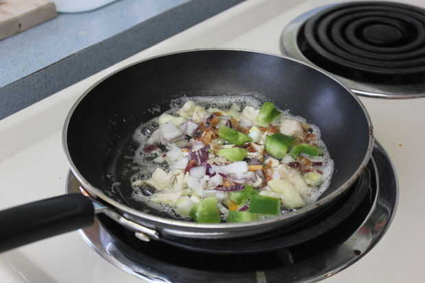 Cocinar por un minuto o dos con una espátula para mezclar todo.
