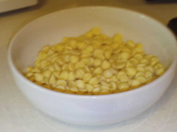 Para que las claras de huevo dulces, tomar la bolsa de chocolate blanco y volcar en un recipientes seguro de microondas, luego calentarlo durante 20 segundos. Luego revuelve, calentar durante otros 20 segundos y revuelve. Poner en el microondas durante 20 segundos y revuelve, si el chocolate blanco todavía no se derrite luego poner durante 20 segundos y revolver luego se debe hacer.