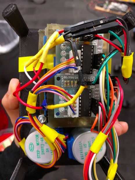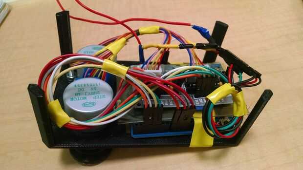 Usé cinta aislante en la parte posterior de los tableros del controlador paso a paso para evitar cortocircuito hacia fuera y más eléctrica cinta para sostener los alambres en paquetes para administración de cables. Arduino está por debajo de los tableros del controlador paso a paso, y tengo una pieza delgada de plástico, del tamaño de una tarjeta de crédito, entre el Ardiuno y las tarjetas de conductor. Entonces todo se fija con cinta aislante más. Podía perforar algunos agujeros más en la tabla impresa 3D para montar el Arduino con tornillos, también.