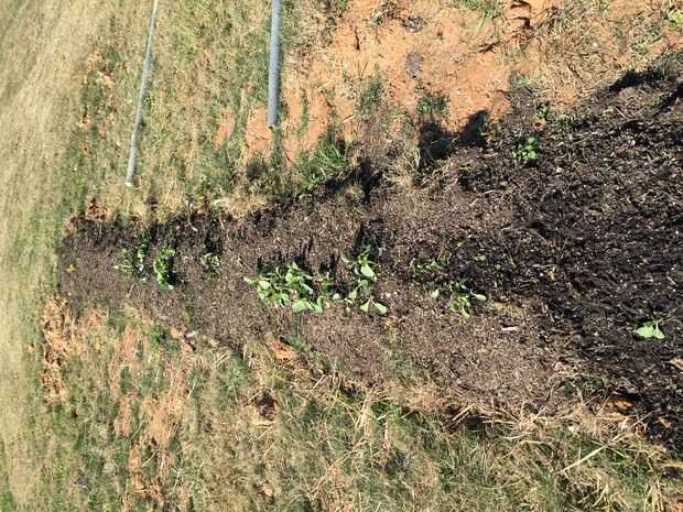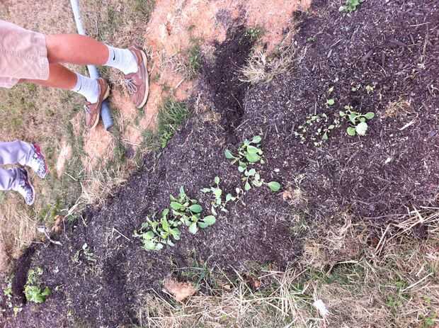 Después de cavar la fosa, cubrir la madera con el suelo y plantar las semillas.