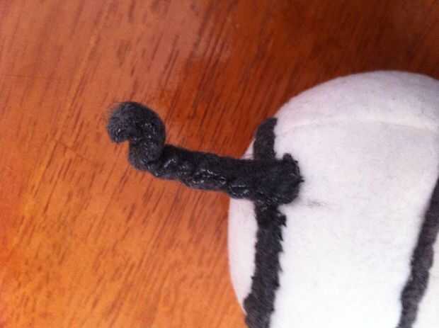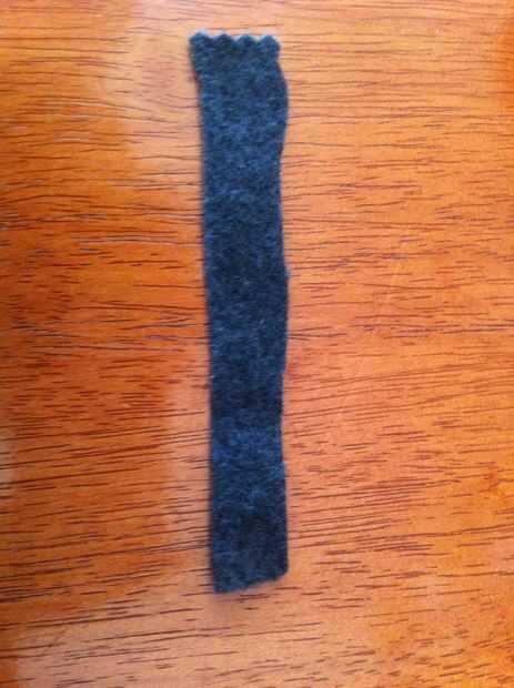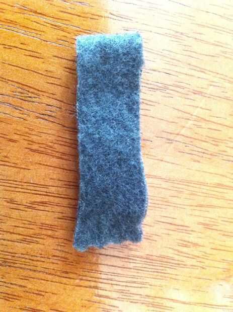 Tomar una de las franjas grises y doblar por la mitad. Coser ambos extremos juntos y coloque en la cabeza.