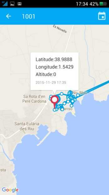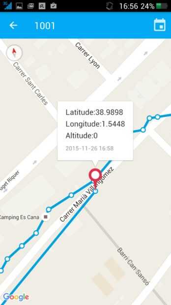 Volver a un estado completo de los sensores y la posición real. La posición se muestra como un enlace de Google Maps que abre el navegador de los móviles que muestran la posición.