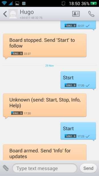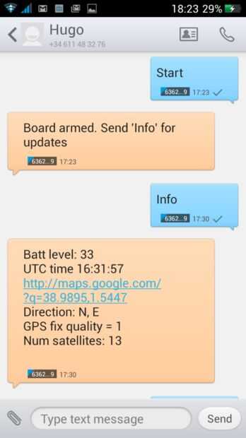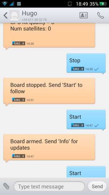 El protocolo de control SMS es muy sencillo y se basa en un conjunto de comandos que debe enviarse al número móvil del dispositivo. Lo esencial está implementado y funciona bien, otro más están bajo prueba.