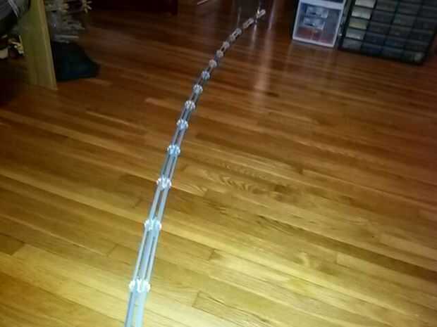 Inicio con la fabricación de cada sección, luego conecte y luego uno al otro. Continúe este proceso hasta alcanzar la longitud deseada. Entonces sostenga ambos extremos cerca unos de otros y conecte. Su aro de hula ya está terminado!