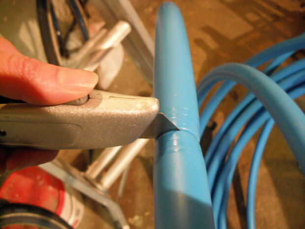 Para cortar el tubo usar un cortatubos (diseñado para cortar tuberías de cobre) para hacer una ranura en el tubo, luego cortar el tubo con un cuchillo afilado. Las calabazas de cortador de tubo el aro cerca del corte, que podría hacer el tubo de ajuste más estrechamente alrededor del conector.