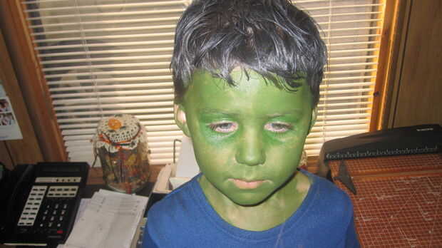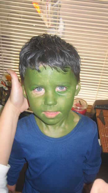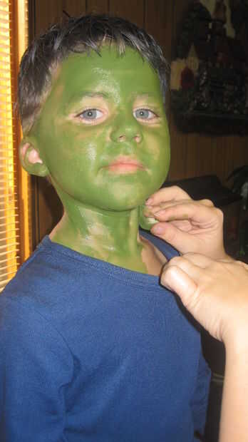 Mantuve una bolsita ziploc con la pintura de la cara de color verde para tocar de arriba