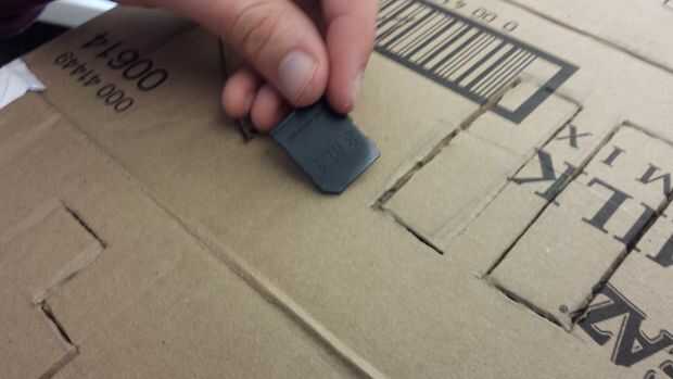 Si usted está planeando en usar El alambre para iluminar los botones, usted querrá grabar a ranuras en. Cortar nuestras líneas de dibujo con una navaja, luego los cortes más ancha con un titular de la tarjeta Sim.