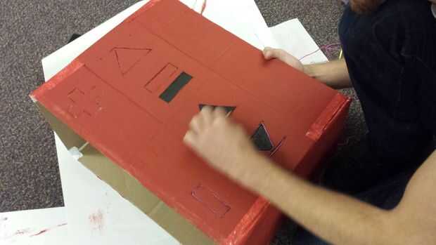 Después de que la pintura esté todo seca, hacer agujeros en las esquinas de las ranuras que hiciste anteriormente. Luego de la alimentación en el extremo del cable El y alimentarlo a través de todo el camino. Ahora lo alimentan por el mismo agujero hasta que te quedan con un lazo pequeño de alambre que puede llenar en la ranura. Rellene y continuar a la siguiente más cercana de botón. En nuestras fotos, nosotros no habíamos pintado todavía, pero enteré de esto fue un error y había que rehacerla!