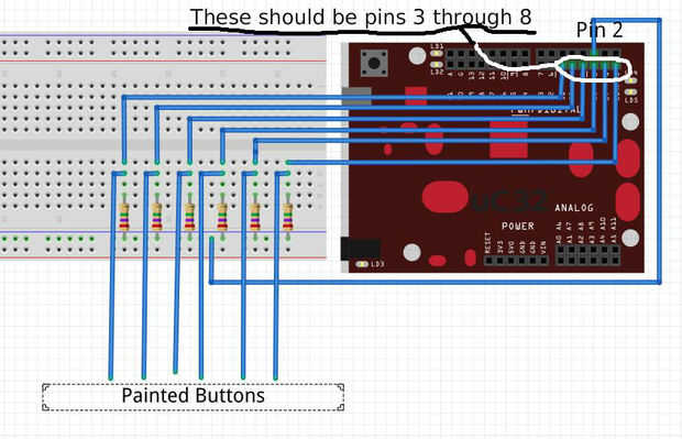 Luego conectar los botones en el tablero en orden! Para esta demostración fue nuestro diseño