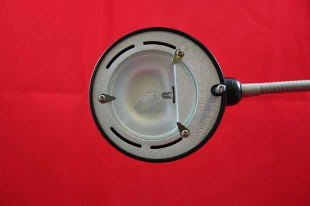 Obtener una lámpara halógena de escritorio y ubicar los tornillos que fijan el protector del cristal de protección.