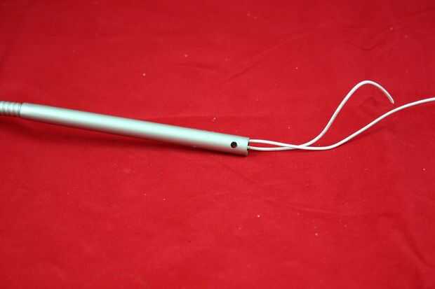 Cuidadosamente un agujero de 1/8 de pulgada en cada lado del cuello de la lámpara, no dañe el aislamiento de los cables.