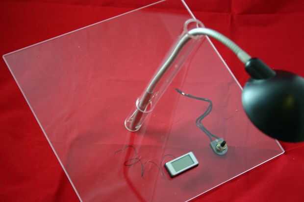 Inserte el montaje del tubo de acrílico a través del agujero grande en la placa de acrílico superior.