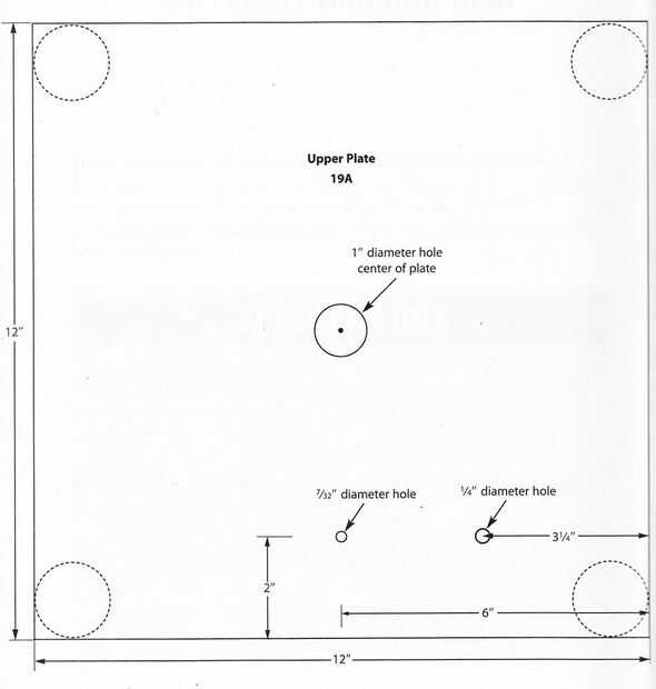 Perforar agujeros en la placa superior, un cuadrado de 12 pulgadas, la hoja de acrílico gruesa 1/4 de pulgada, como se muestra en la plantilla a continuación.