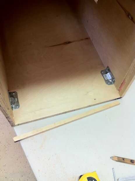 Rip una pequeña franja del ancho de la abertura en la parte frontal de la caja y fina lo suficiente como para sentarse frente a ranuras de enrutado. Esta pequeña pieza evitará alguna fiera desde la administración que atornillar su trampa por golpear en la puerta. Esto podría ser excesiva si sus surcos se hicieron bien y la puerta encaja diapositivas bastante ajustados, pero todavía libremente, pero calculo que no hace daño. Pegar esta pieza en su lugar asegurándose de que no impide su puerta se cierre.