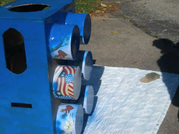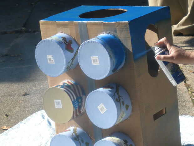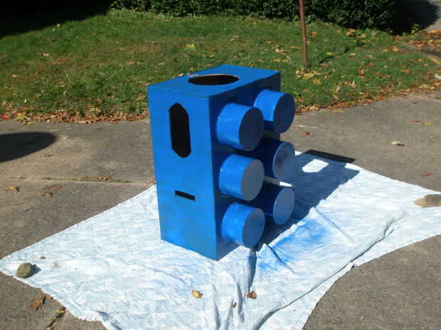 Una vez que el pegamento se secó y nos aseguramos de que los postes fueron celebración tomamos el traje exterior y pintado con pintura en aerosol Rust-Oleum azul profundo. Tomó dos capas utilizando una lata y un medio para obtener buena cobertura. Su kilometraje puede variar. Asegúrese de seguir las instrucciones en la lata y pintar al aire libre o en un lugar bien ventilado.
