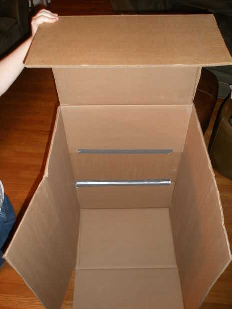 Antes hemos pegado las aletas del largo del lado abierto de la caja cortamos el extremo inferior de la caja usando cuchillas.