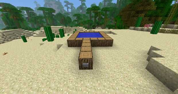 Una vez haya realizado su pared de 6 por 6 alrededor de 4 por 4 un bloque profundo agua de su fuente solo es necesario colocar unas cuadras más. Elegir el lado que desee la entrada (el botón o palanca) ser. luego recoger un bloque y construir 4 cuadras. Luego poner un boton en el bloque al final.