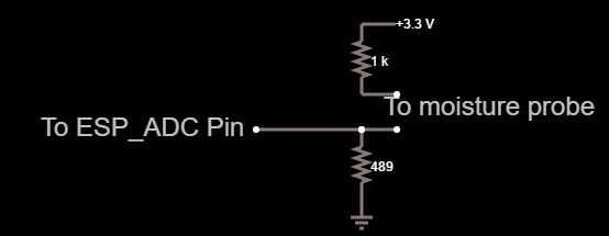 Esto fue bastante fácil para mí como mi módulo ya había un LDR conectado al pin ADC todo lo que tenía que hacer era simplemente de soldadura de la LDR y la soldadura de la posts.this de humedad del suelo se muestra en el circuito dado. desde el circuito divisor de tensión podemos ver fácilmente que la tensión nunca sobrepase los 1v con el divisor dado. Así lo que es fácil de leer la resistencia entre las sondas.