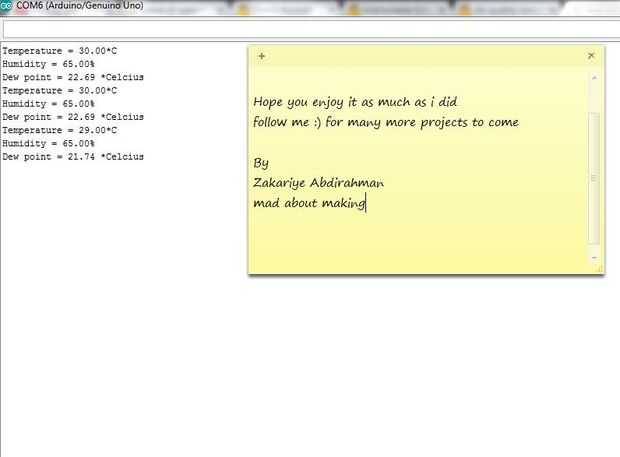 lo hiciste!!! un paso más, subir código y ejecutarlo, haga clic en Monitor de la serie o pueden (Tools -> Serial Monitor o Ctrl + Mayús + M) aparecerán los datos del sensor
