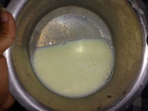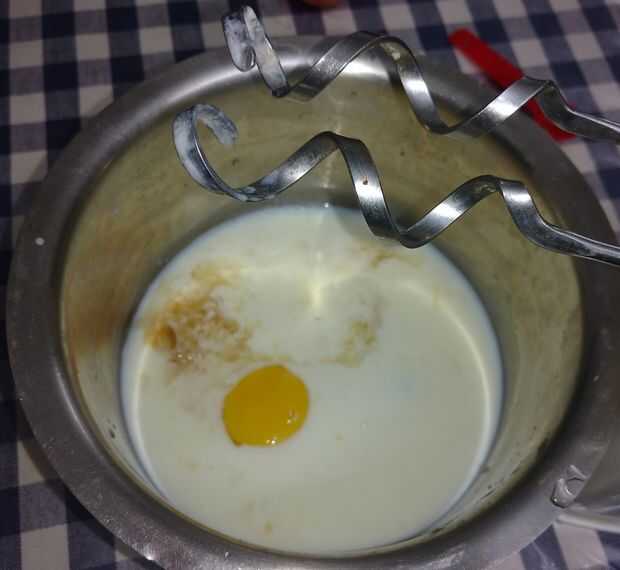 En otro tazón grande agregar la leche, huevos, vinagre, esencia de vainilla y batir durante 1 minuto. El batir es muy importante como hace tu pastel más airy.whisk siempre en una dirección y esto es un Consejo que había pasado de mi abuela. Ahora la mezcla tendrá burbujas.