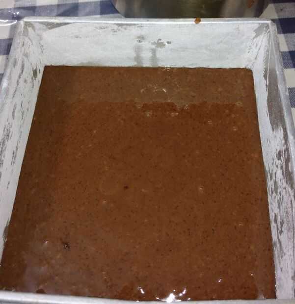 He utilizado un molde cuadrado para que puedo cortar cuadrados de la torta.