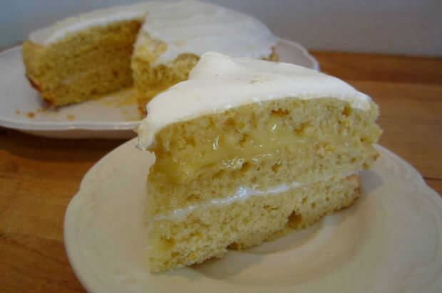 Húmedo en capas de pastel de limón (9 / 9 paso)