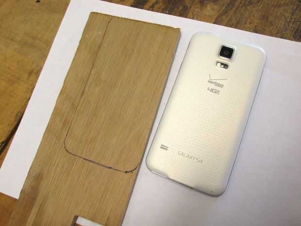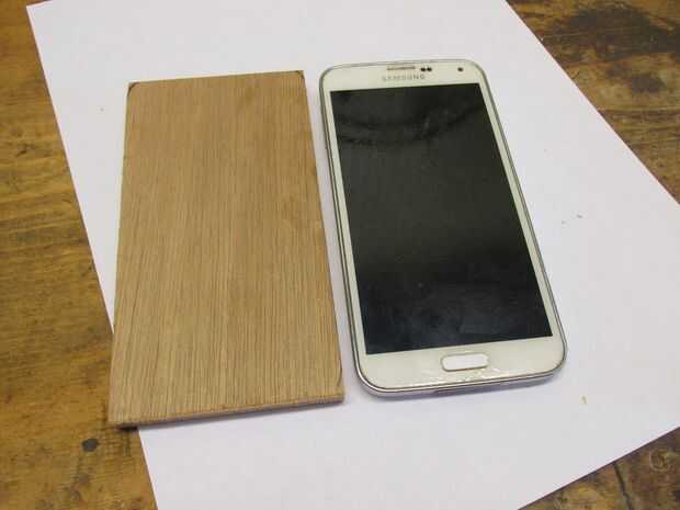 Lo primero que quieres hacer de este proyecto es hacer un análogo (réplica) de su teléfono en madera. La razón de esto debe ser bastante evidente, que vas a estar haciendo un montón de perforación, corte, fijación, corte y un montón de otras tareas bastante destructivos y tener algo que se puede utilizar para representar las dimensiones del teléfono potencialmente le ahorrará mucho dinero en caso de una catástrofe de teléfono.