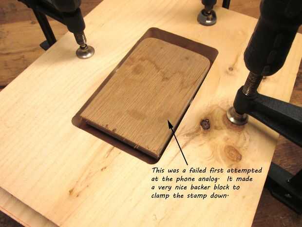 Mientras que el cuero húmedo se fija dentro del molde puede Agregar adornos con estampillas para decorar el exterior de su caja de cuero del teléfono. La forma que se construye el molde permite fácil acceso a la parte delantera de la caja para poder estampar o cuero en cualquier forma que le guste la herramienta. PRO punta: Si quieres diseños de sello en la piel te sugiero esperar unas horas hasta que se haya evaporado parte del agua en el cuero. Si la piel está demasiado húmeda los sellos no dejan impresiones nítidas.