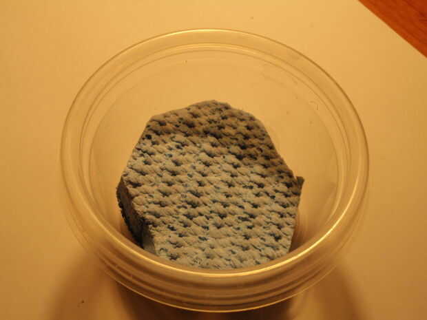 Corte la esponja si no encaja en el recipiente de tupperware cómodamente. Asegúrese de no presionar contra la tapa.