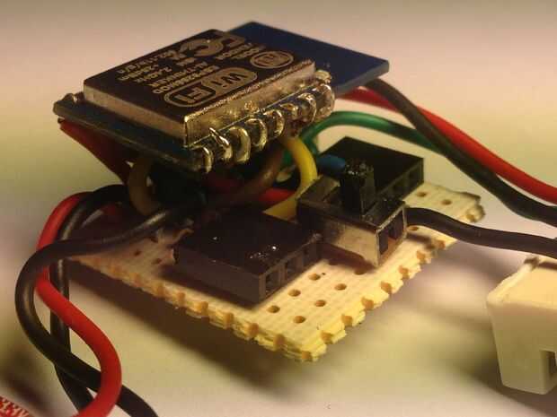 Foto 4: (cerrar) como se ve hay algunos conectores enchufe hembra para romper algunos pines importantes de la ESP para poder restablecerla, conecte el adaptador serie para cargar código (poner un pequeño interruptor de allí establecer el ESP en modo de flash) y así sucesivamente.
