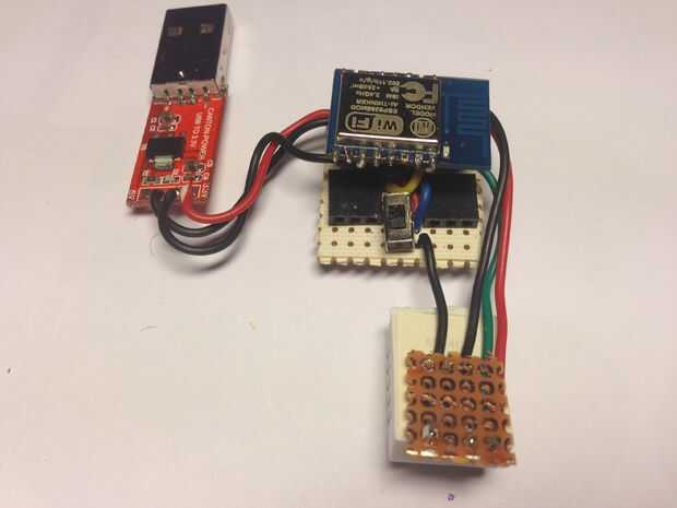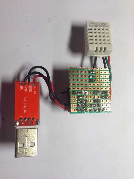 Foto 2: ESP8266, USB a 3, 3V, sensor de humedad DHT22 juntos en el circuito de soldadura.