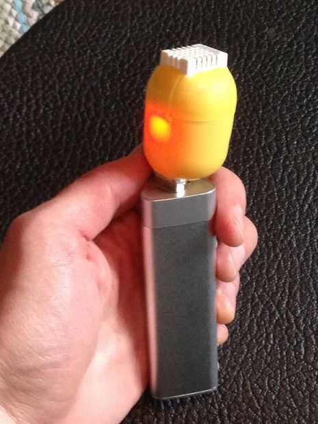 Foto 1: El "HumiGit" se alimenta por un banco de energía estándar USB. (Incluso una pequeño 2200mAh batería tendrá una duración de más de un mes).