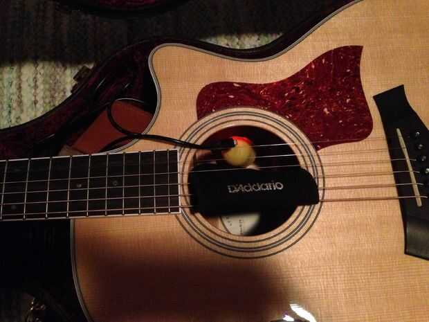 Foto 2: Con un cable de extensión USB el HumiGit puede colocarse dentro de la guitarra!